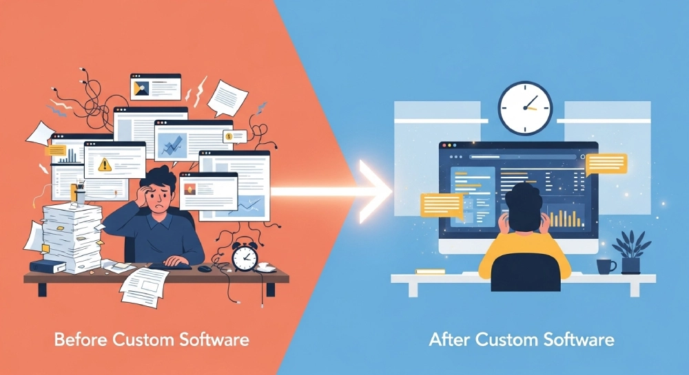 Investing in custom software is very important for business for online growth. We may know that most of the business may look for general software for its affordability but later business may face challenges like integrations, unwanted and workflow restrictions. Custom software helps for productivity, scalability, operational efficiency, easy integration with existing systems and helps to align with your business operations perfectly. Some of the benefits of using custom software for business are,